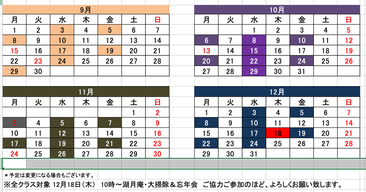 上記のコマ以外でグループ・レッスンをご希望の場合、3人以上のお申し込みで曜日時間帯などご相談に応じます。